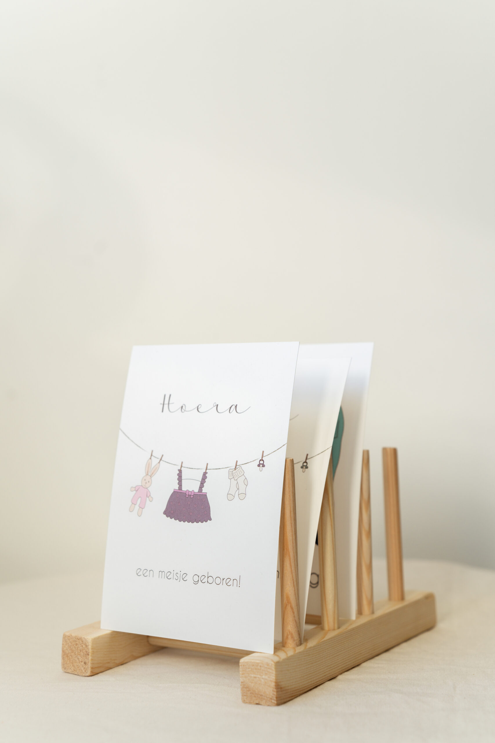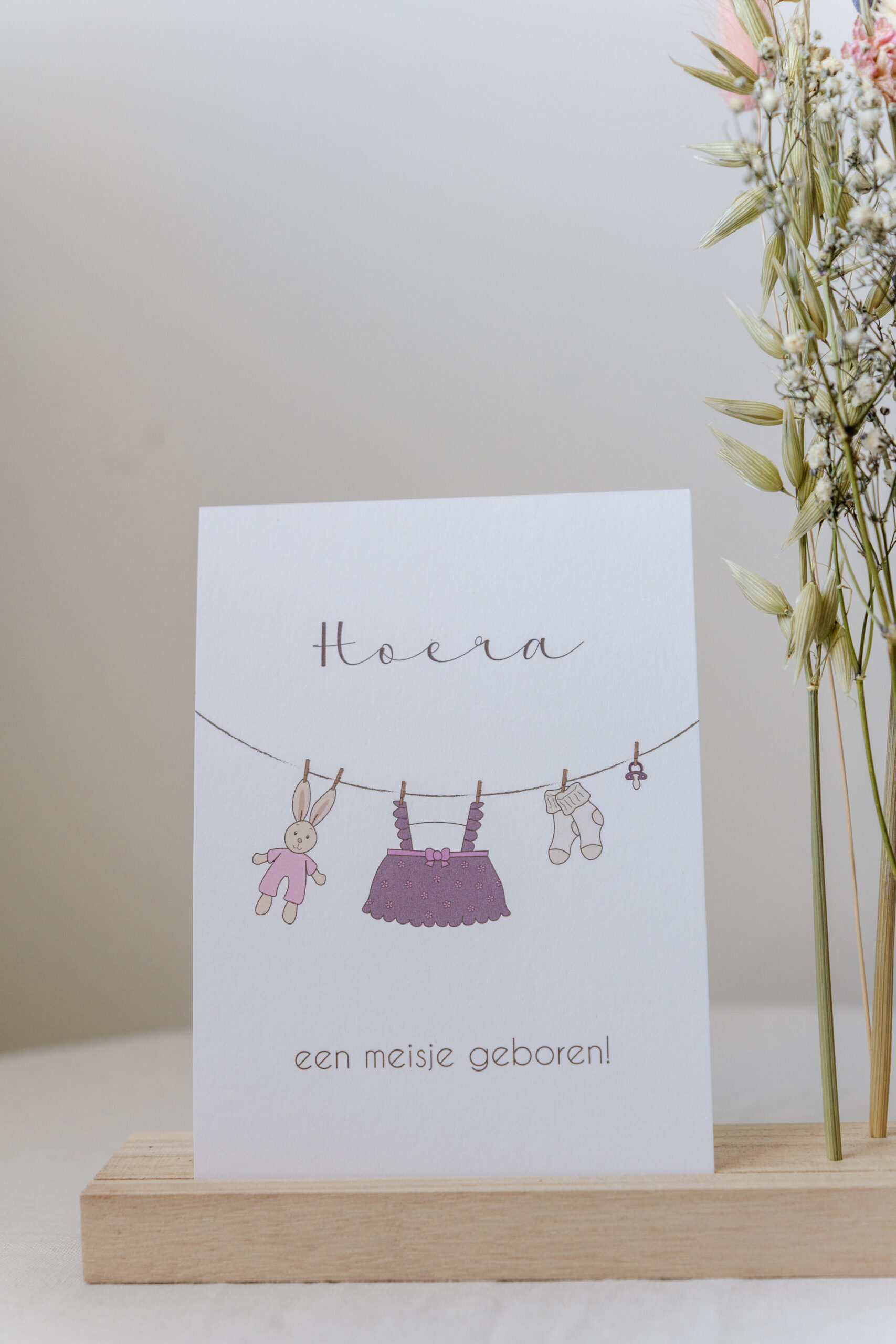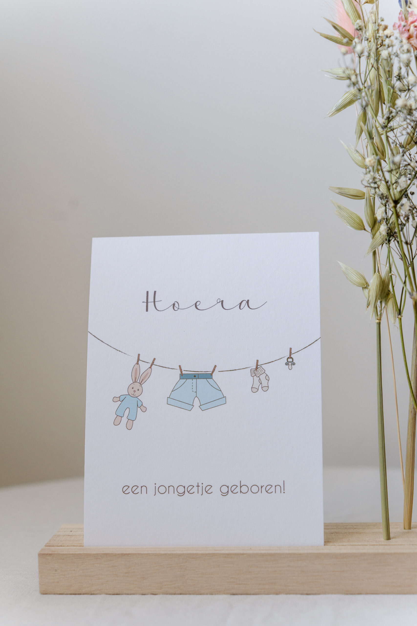 Zachte vormen, rustige typografie en een open uitstraling maken deze kaart geschikt voor een bijzonder moment.