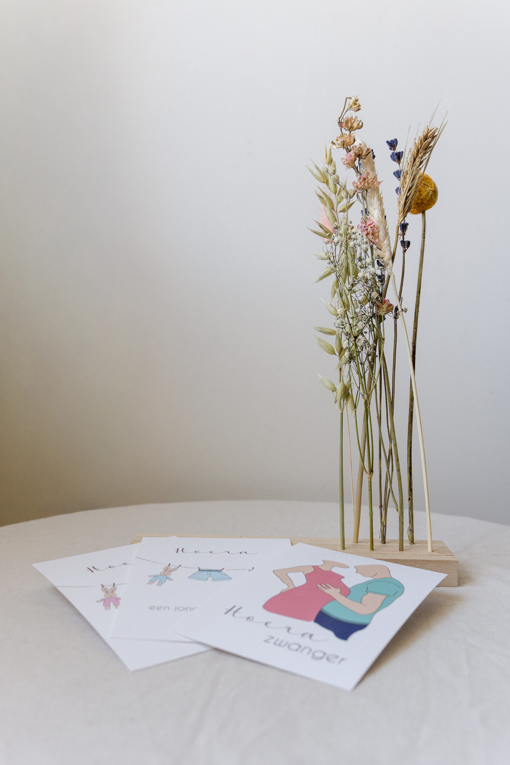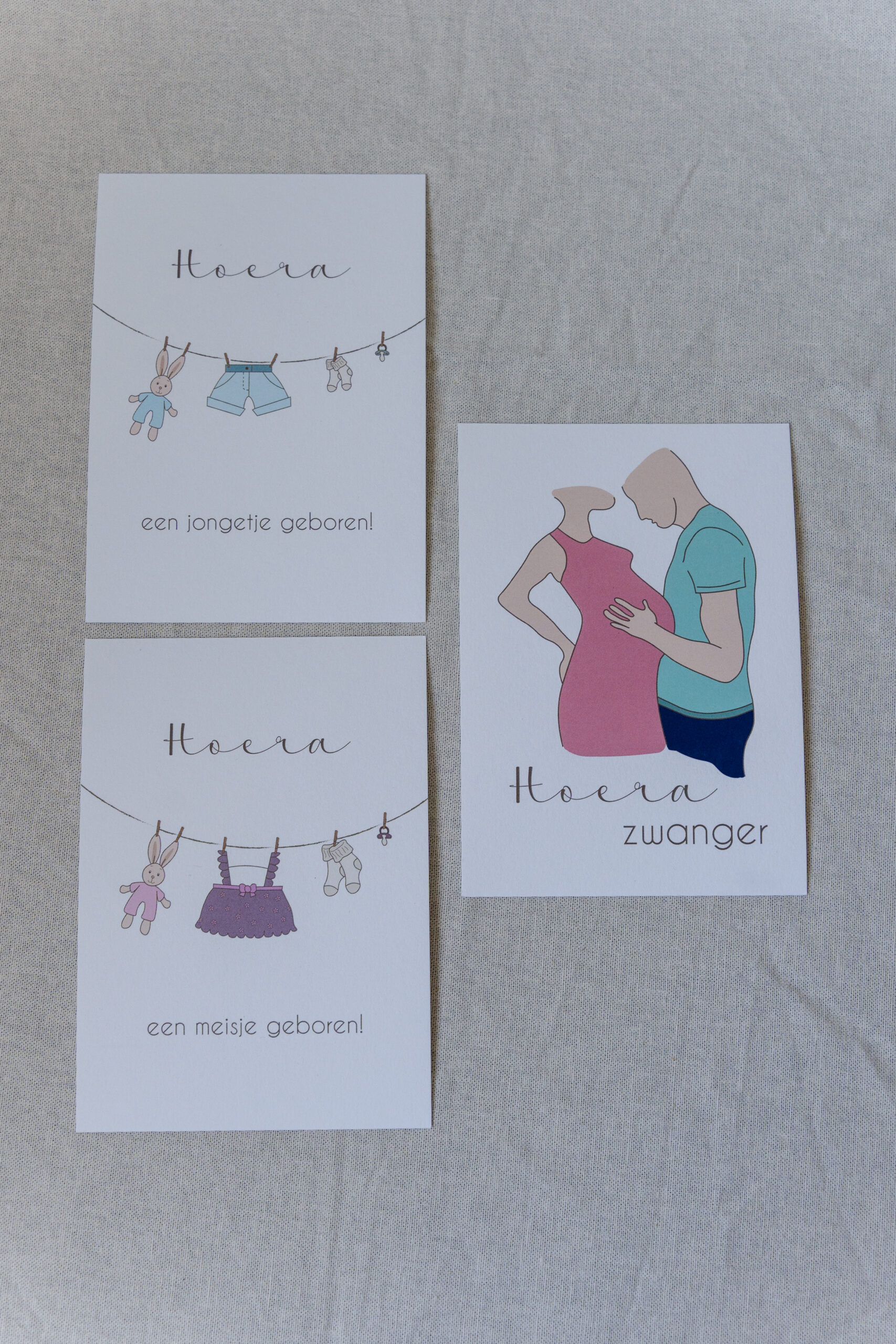 Een zorgvuldig samengestelde set kaarten voor een zwangerschap en geboorte.